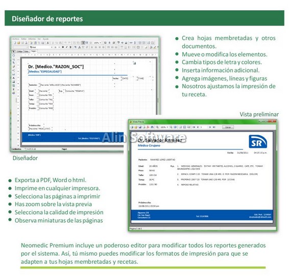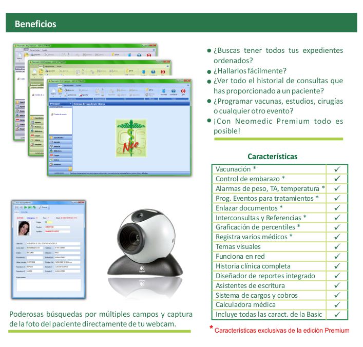 Neomedic es el más poderoso programa para administrar tu consultorio de una manera sencilla y efectiva, controla la información del paciente así como las consultas o evoluciones. Guarda la fotografía y diversas imágenes del paciente. Controla la vacunación y embarazo de sus pacientes.